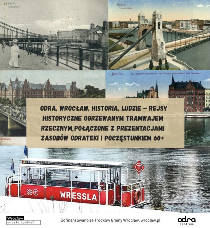 Odra, Wrocław, Historia, Ludzie – bezpłatne rejsy historyczne dla Seniorów ogrzewanym tramwajem rzecznym połączone z prezentacją zasobów Odrateki